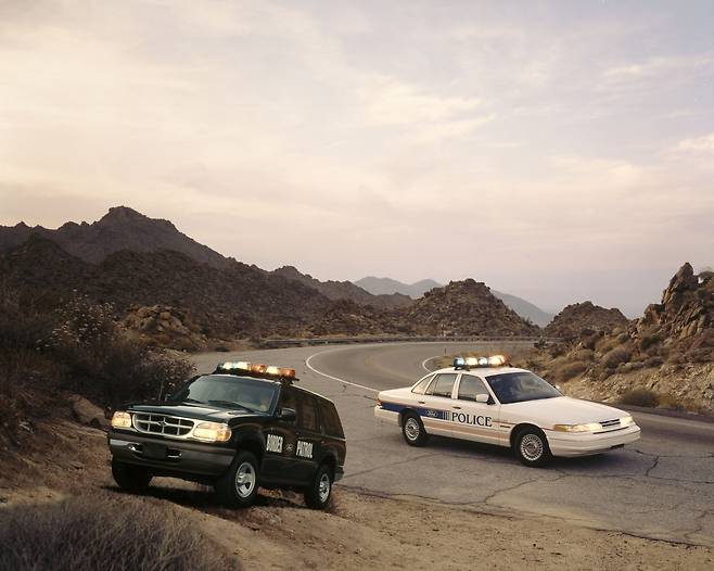 포드는 미국의 법률 집행 기관이 선호하는 브랜드로서 오랜 역사를 이어가고 있다고 자부합니다. 1915년 캘리포니아주 오클랜드 경찰 업무를 위한 자동차를 시작으로 시동을 걸었던 포드의 경찰차는 1950년부터 본격적으로 달리기 시작합니다. 포드는 경찰 업무에 적합한 속도, 안전, 내구성, 디자인 등 여러 기준에 부합하는 제품을 제공했을 뿐만 아니라 세 가지 동력 옵션도 선택할 수 있는 경찰 패키지 자동차를 공급한 최초의 제조 업체로 발돋움했거든요. 뉴욕 경찰서는 포드 경찰 패키지 430대를 구입하기도 했는데 그 당시 부서에서 가장 큰 규모의 주문이었다고 합니다.