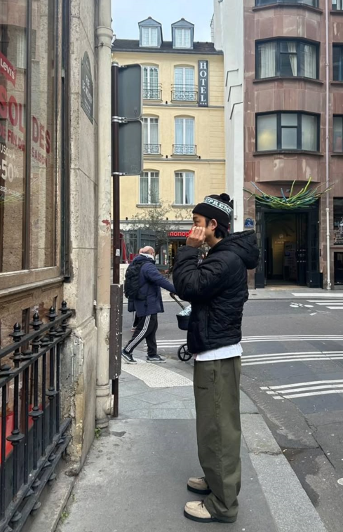 블랙 패딩 점퍼, 화이트 티셔츠,