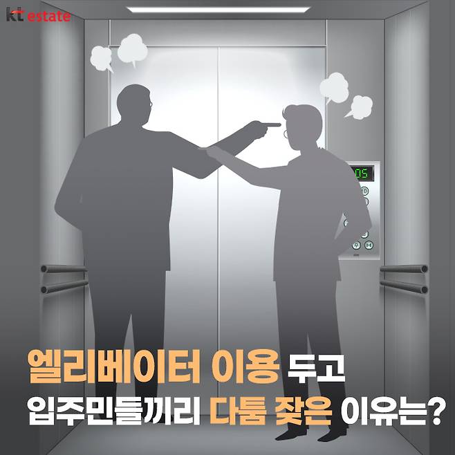 지금까지 아파트 내 승강기 이용 및 관련 분쟁 사례 및 규정 등에 관해 알아 봤습니다. 아파트는 수많은 사람이 공동으로 거주하기 때문에 각자의 사정이 달라 작은 상황에서도 첨예한 대립이 일어나곤 합니다. 엘리베이터 이용 역시 마찬가지라 할 수 있는데요. 이럴수록 입주민 간 서로 양보와 조율을 통해 합리적으로 해결하는 태도가 중요하며, 향후 정부에서도 이러한 분쟁과 관련해 지원 정책이나 제도를 마련하는 것도 필요해 보입니다.