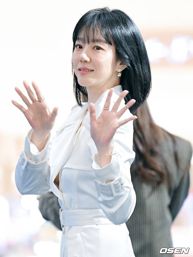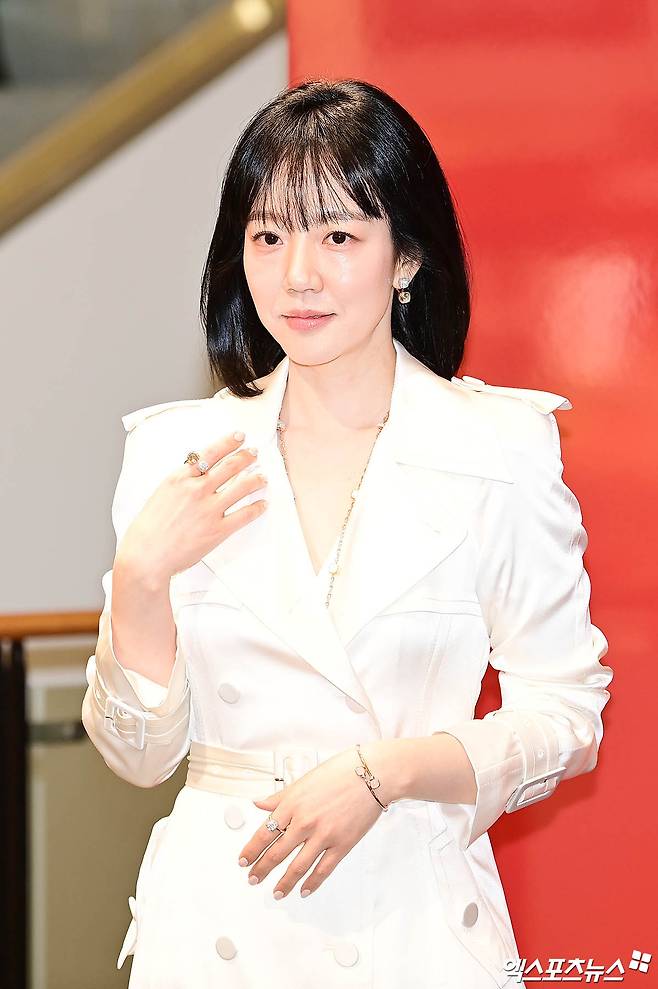화이트 트렌치코트 + 화이트 힐 + 화이트 액세서리로 통일된 룩을 선보인 임수정은 전체적으로 깔끔하고 세련된 분위기를 연출했다.