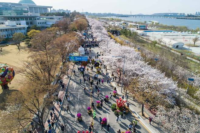한강을 배경으로 펼쳐지는 이 축제는 매년 약 1,886주의 벚나무와 진달래, 개나리, 철쭉 등 13종 8만여 송이의 봄꽃이 어우러지며 도심 속 화려한 봄의 정취를 선사한다.