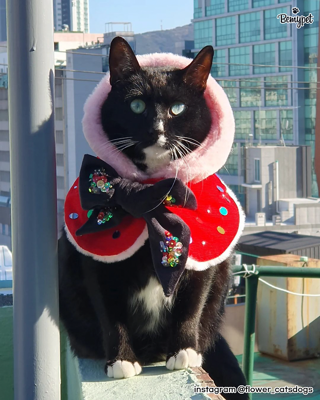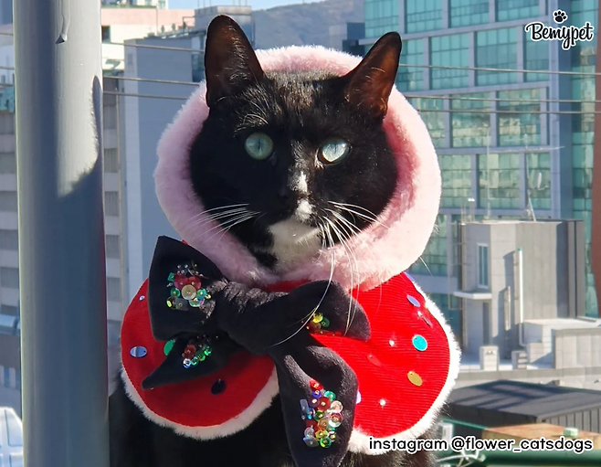 이때, 고양이 케이프는 옷과 다르게 목에만 착용해 고양이가 비교적 적응을 잘 하는 편이에요. 그래서 고양이와 함께 사진을 찍을 땐 옷보단 고양이 케이프를 착용하는 걸 추천합니다.