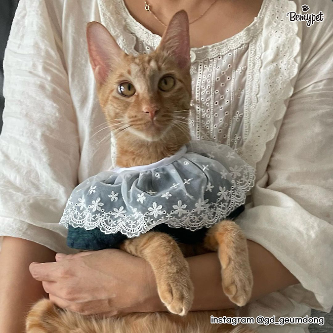 고양이는 강아지처럼 옷이나 액세서리를 잘 착용하지 않죠. 그리고 고양이에게 옷을 입히면 다리에 있는 수염을 건드려 불편함을 느낍니다.