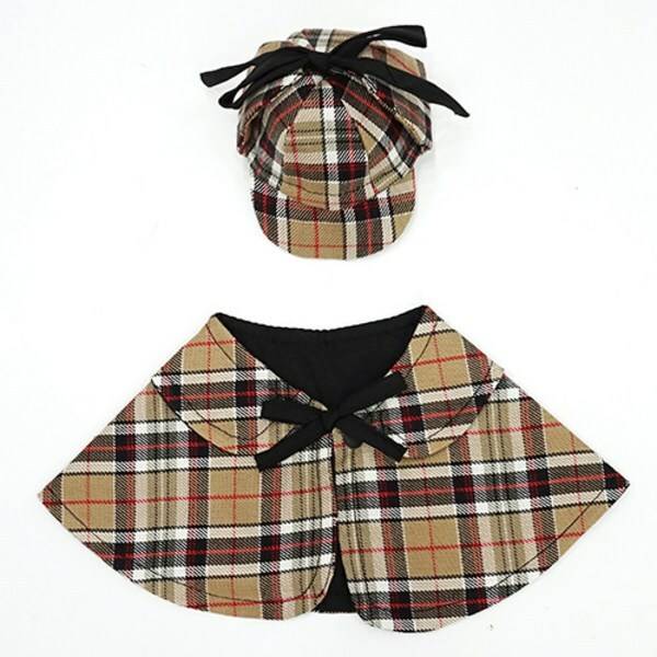 이 제품은 앞부분에 달린 큼지막한 단추로 입고 벗기는 형태의 케이프예요. 귀여운 모자까지 더해 탐정 컨셉의 사진을 찍기에도 좋답니다.