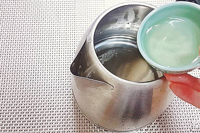 방법도 정말 간단해요. 커피포트에 물을 약간 채우시고 여기에 식초 소주컵 기준 1컵만 부어주세요.