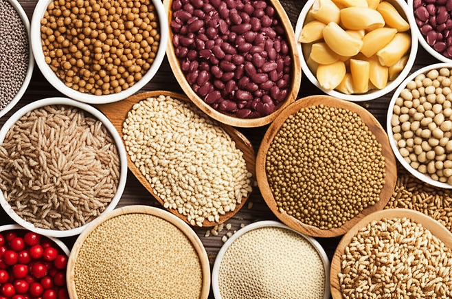 탄수화물: 현미밥, 통밀빵, 귀리 등 정제되지 않은 곡물 섭취