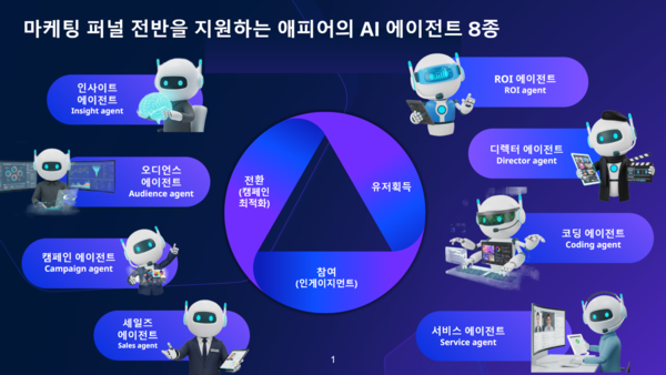 애피어는 이달 11일 서울 강남구 성암아트홀에서 '애피어 AI 에이전트 로드쇼'를 열고 8종의 AI 에이전트를 소개했다. AI 에이전트는 △고객 획득과 퍼포먼스 극대화 담당 '애드 클라우드 3종' △리텐션 및 고객경험(CX) 강화 지원 '개인화 클라우드 3종' △전략적 의사결정을 돕는 '데이터 클라우드 2종' 등으로 구성됐다.