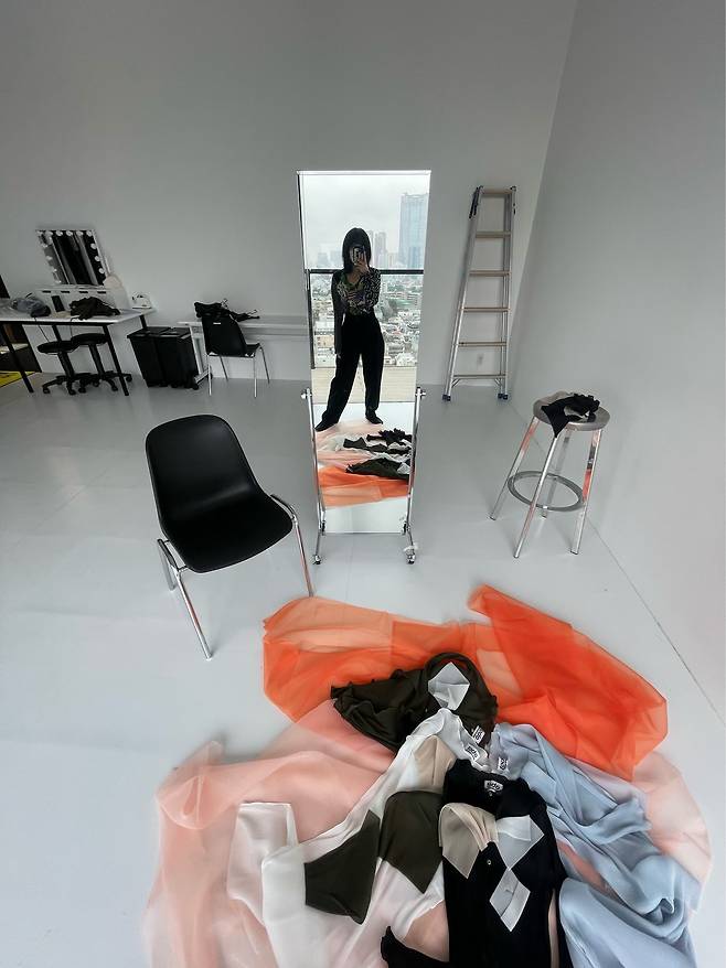 L.A는 나만의 브랜드를 런칭하는 데 필요한 시간과 공간 그리고 자원을 줬다. L.A에서는 시간이 좀 더 느리게 간다. 뉴욕에서는 사람들에게 둘러싸여 있는 에너지, 소음에서 오는 혼잡스러움이 있지만 L.A에서는 음악과 함께 탁 트인 풍경을 혼자 운전하며 보내는 로맨스가 있다. 고독은 나에게 영감을 주는 정신적 공간을 준다. 지금껏 정말 지속 가능성을 염두에 두고 책임감 있게 생산하는 브랜드를 만들고 싶었다. L.A에는 봉제 공장과 원단 판매원들이 많이 있다.