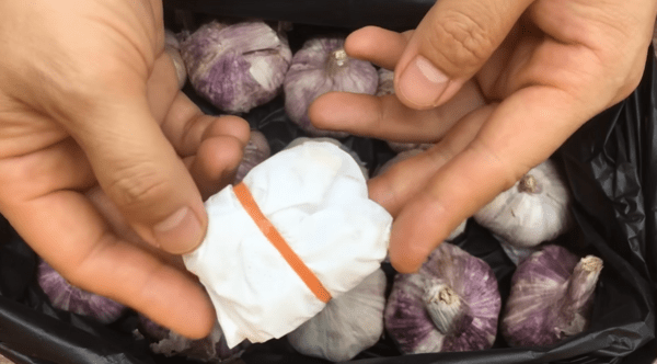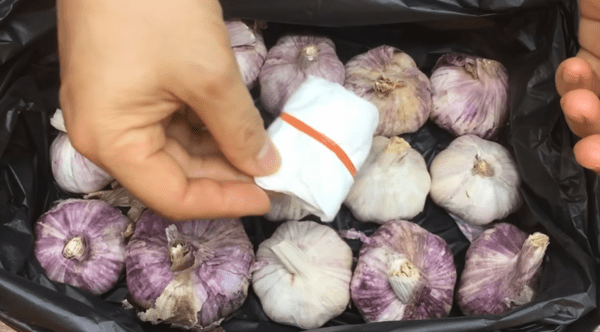 마늘을 장기간 보관하려면 검은색 비닐봉지에 마늘을 깨끗하게 넣어 빛을 차단하는 것이 효과적입니다. 그와 함께, 천이나 종이타월 위에 소금 한 숟가락과 생강 한 조각을 넣고 잘 포장한 뒤, 이 포장물을 마늘봉지 안에 같이 넣어 줍니다. 소금은 습기를 흡수해 곰팡이 발생을 막고, 생강은 자연 살균 작용을 하여 마늘이 상하는 것을 방지합니다. 모든 준비가 끝나면 비닐봉지 입구를 단단히 묶어 건조하고 서늘한 곳에 보관하면 1년 동안 싹이 나지 않고 신선함을 유지할 수 있습니다.