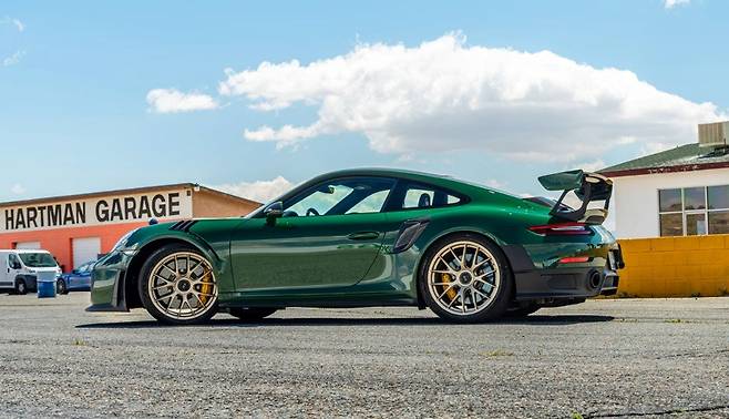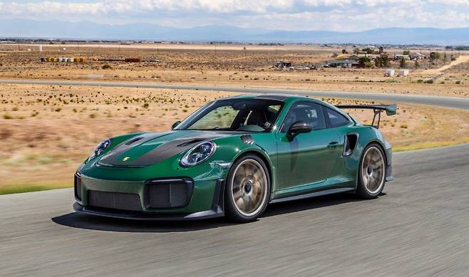 2018년형 포르쉐 911 GT2 RS 바이작 에디션은 랩 타임을 기록하기 위해 설계된 차량입니다. 3.8리터 트윈 터보 플랫 식스 엔진을 사용하여 690마력과 553lb-ft(76.4kgf.m)의 토크를 후륜에 전달하며, 7단 듀얼 클러치 변속기를 통해 작동합니다. 바이작 패키지를 통해 마그네슘 휠을 장착하여 총중량을 약 40파운드(18.1kg) 줄였습니다. GT2 RS는 파워, 그립, 공기역학, 브레이크 성능의 완벽한 조합을 보여줍니다.