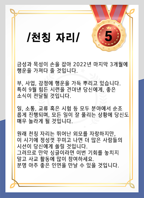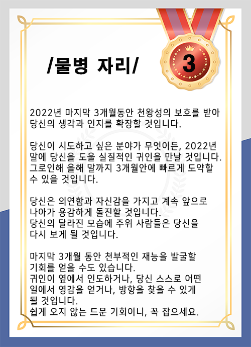 10월~12월까지, 2022년 마지막 남은 3개월 동안 가장 운세가 좋은 사람은 누구일까요? 먼저 확인하고 미리 대비하여 행복하게 마무리하시길 빕니다.