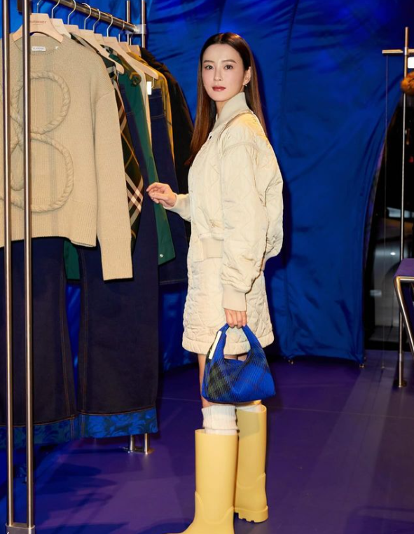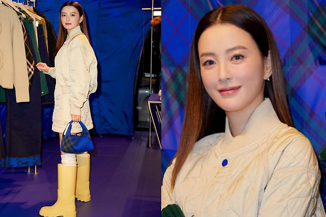 버버리 공식행사장에 등장한 정유미는 베이지색 의상을 입고 동안 외모를 뽐냈다.
