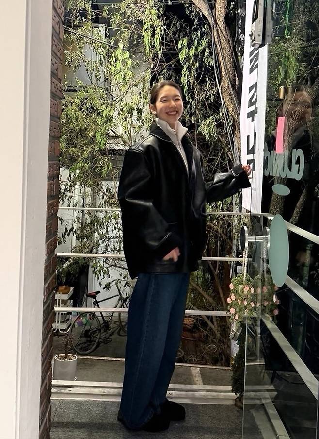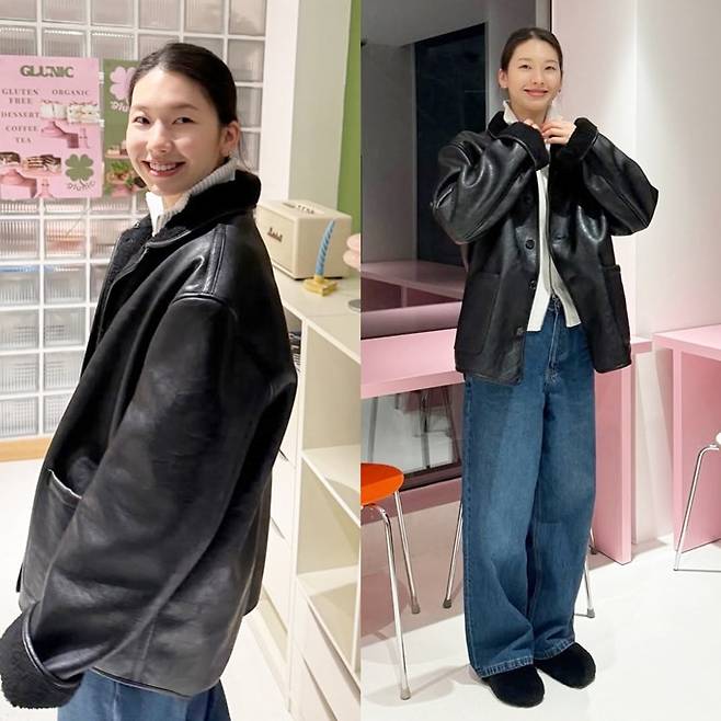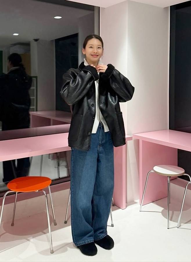 축구 국가대표 김승규 선수의 아내이자 모델 김진경이 오버핏 가죽 재킷으로 시크하면서도 힙한 외출룩을 선보였다.