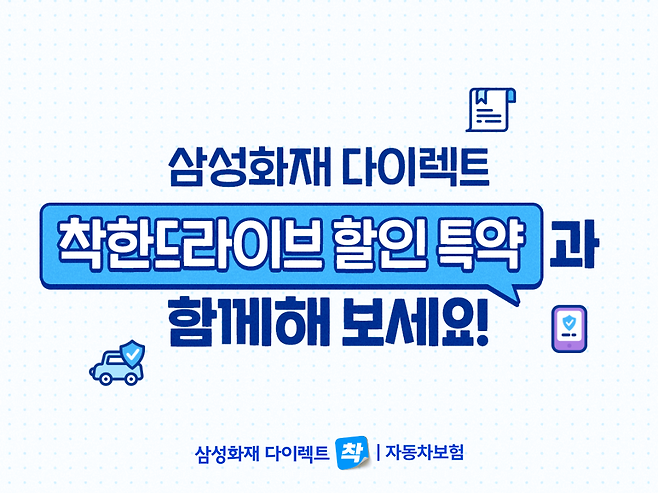 지금까지 삼성화재 다이렉트의 ‘착한드라이브 할인 특약’에 대해 알아보았어요. ‘착한드라이브 할인 특약’을 통해 안전도 지키고 보험료도 아끼는, 일석이조 운전 생활을 즐기시길 삼성화재가 응원하겠습니다!