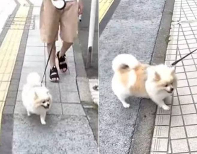 평소와 다를 바 없이 산책을 하러 나와서 기분이 무척 좋은 포메라니안 강아지가 있습니다. 기분이 얼마나 좋은지 신나게 꼬리까지 흔들어 보이며 산책하는 녀석.