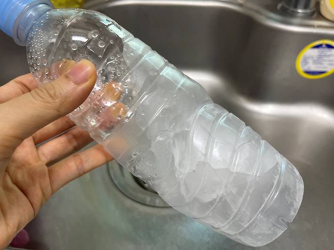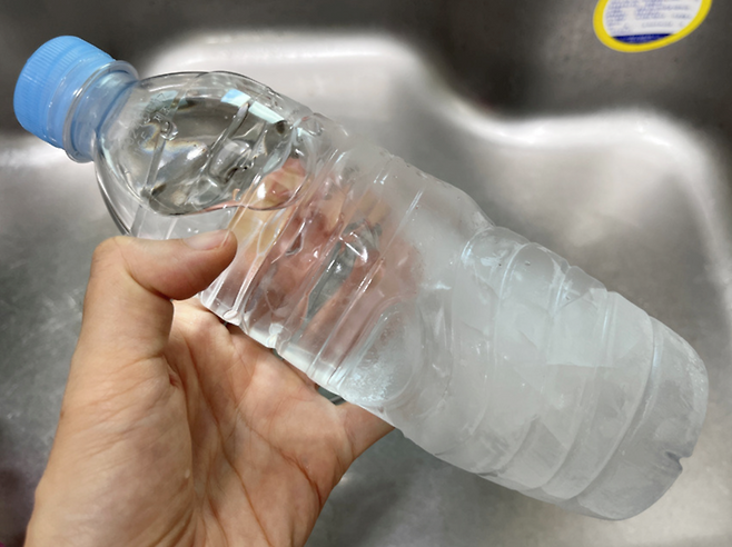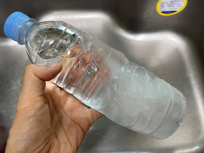 생수병 기울여서 얼리기