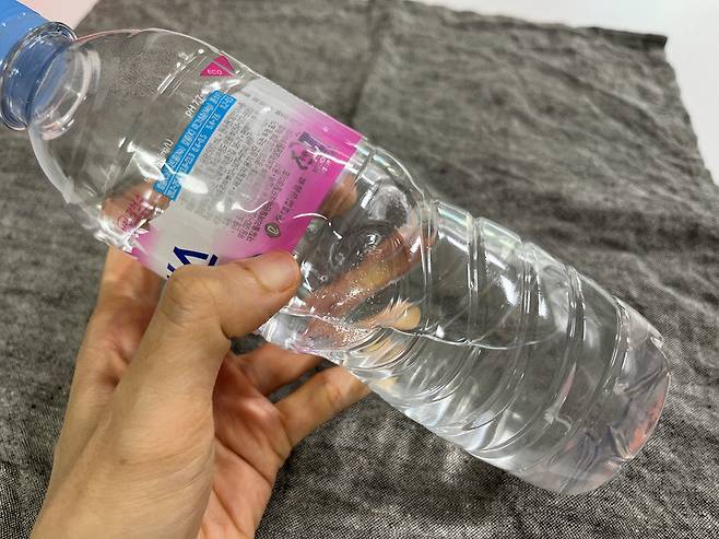 대신, 생수병은 얼릴 때 45도로 살짝 기울여 세워줍니다.