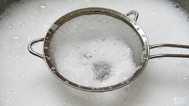 단순 헹굼으로는 기름기와 단백질이 엉긴 찌꺼기를 없애기 어렵고, 말리는 과정에서 잔여물이 굳어 이후 조리 과정에서 다시 음식과 접촉할 위험이 커진다. 겉보기에 깨끗해 보여 방심하기 쉽지만, 눈에 보이지 않는 오염은 채반 구멍 속 깊숙이 자리해 있다. 그럼 채반은 어떻게 세척해야 할까.