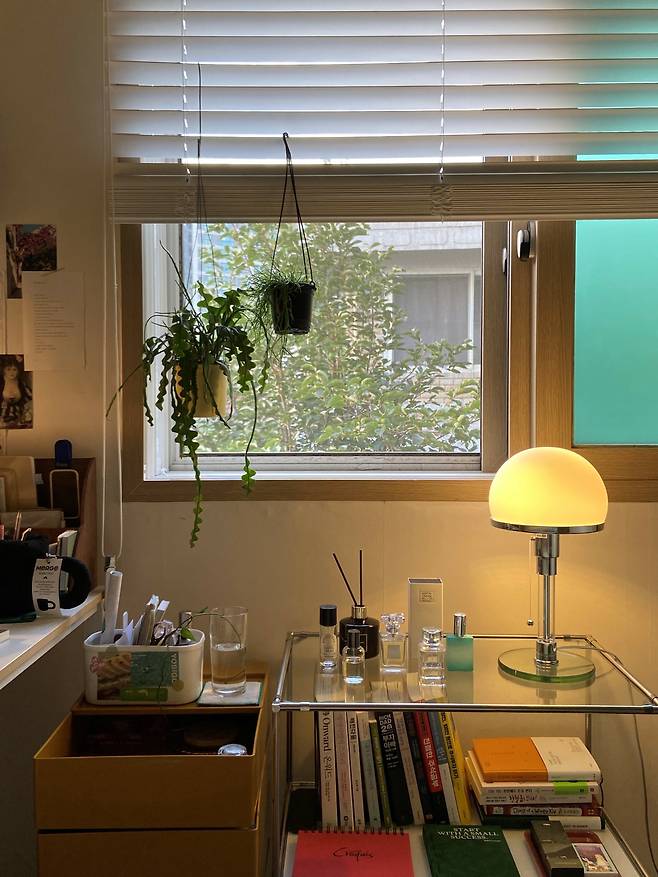 저는 따뜻하고 포근한 느낌을 좋아해서 형광등보다 작은 조명을 키는 것을 좋아합니다. 노란 조명은 따뜻한 분위기를 연출할 수 있어 자주 사용하고 있습니다. 그리고 우드 소재를 좋아해요.
