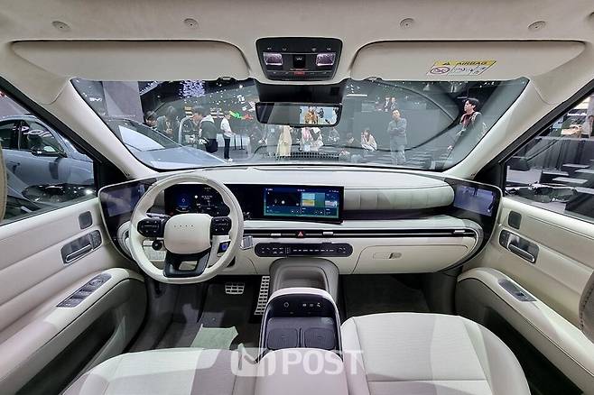 실내는 거주공간 같은 따스함과 편안함을 전해줄 수 있도록 부드러우면서 풍부한 느낌의 패딩 패턴을 적용했다. 운전자 중심의 파노라믹 커브드 디스플레이와 크래시패드 측면에 일체형으로 탑재한 디지털 사이드 미러(DSM)는 실용성과 개방감을 높인다.