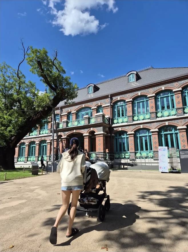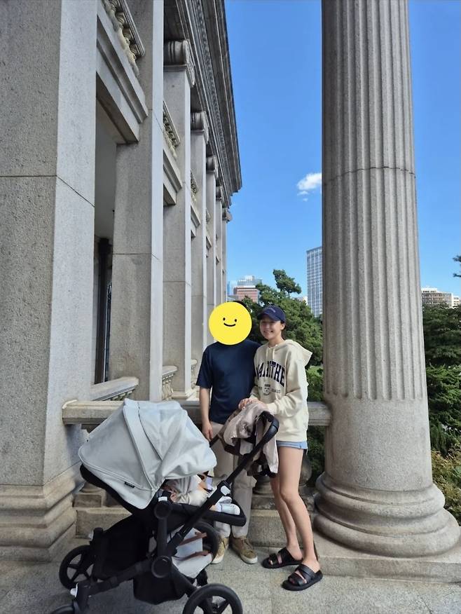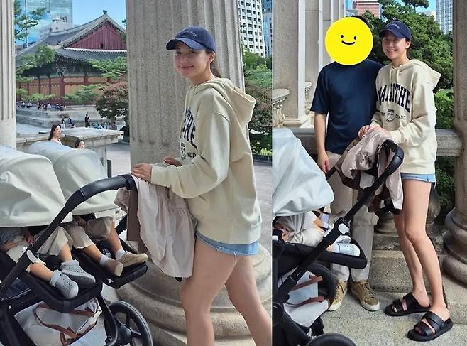 유모차를 끌며 환하게 웃는 모습으로 남편과 함께한 가족사진에서는 단란하고 따뜻한 분위기가 물씬 전해져 보는 이들의 마음도 훈훈하게 만들었습니다.