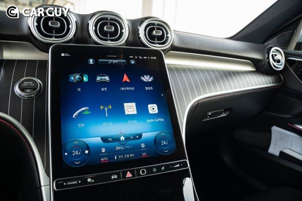 S클래스에서 먼저 선보였던 MBUX 2세대가 적용되어 무선 애플 카플레이와 안드로이드 오토를 지원한다. 디스플레이가 큰데다 버튼 터치 조작성도 훌륭하다. 브랜드가 없는 기본 오디오지만 음감이 상당히 좋은 편이었다.