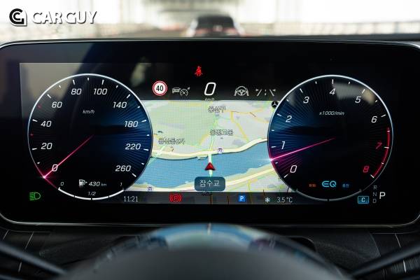 실내는 무척 화려하다. 첫눈에 화려한 엠비언트 라이트와 11.9인치의 센터 디스플레이가 들어온다. 크기를 제외하면 S클래스에서 보던 것과 같은 구성이다. “엠비언트 라이트의 벤츠”답게 사치스러울 정도로 화려하다. 광량은 꽤 밝으나 시야에 거슬리지 않는다.