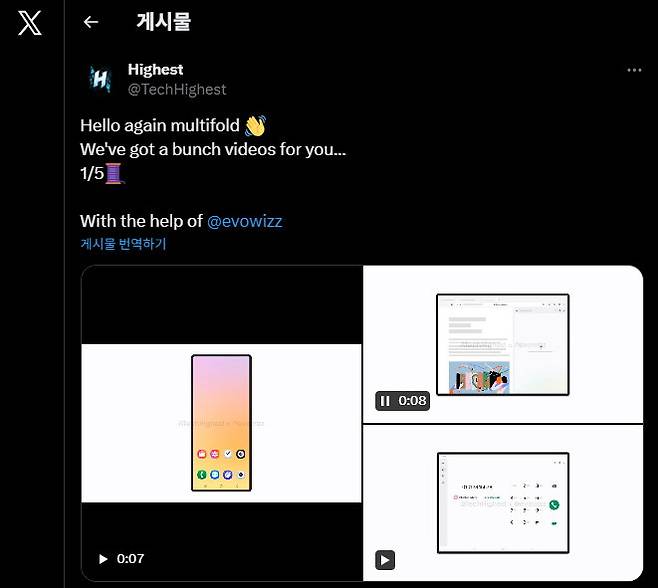 무엇보다 눈에 띄는 건 ‘생산성’입니다. 갤럭시 Z 폴드7이 아직 아쉬웠던 멀티태스킹과 확장성 부분에서, 트라이폴드는 한 단계 더 나아가는 모습을 예고하고 있거든요. 내부적으로는 분할 화면과 플로팅 윈도우 같은 익숙한 멀티태스킹은 기본이고, 여기에 태블릿 라인업처럼 ‘내장 DeX 모드’까지 가능해질 수 있다는 관측이 나옵니다. @TechHighest에 따르면, X(트위터)에 올라온 일련의 짧은 영상들에서 이러한 사용성이 암시되었다고 해요. 덕분에 화면을 세 조각으로 나눠 쓰는 수준을 넘어, 노트북에 가까운 업무 흐름을 휴대폰 한 대로 구현하는 그림이 그려집니다.