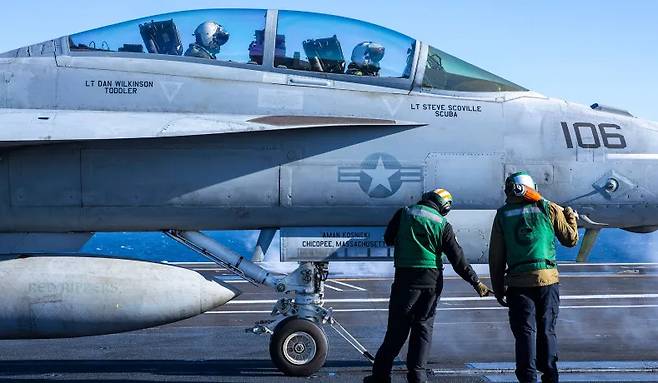 조종사들이 항모를 이동해가며