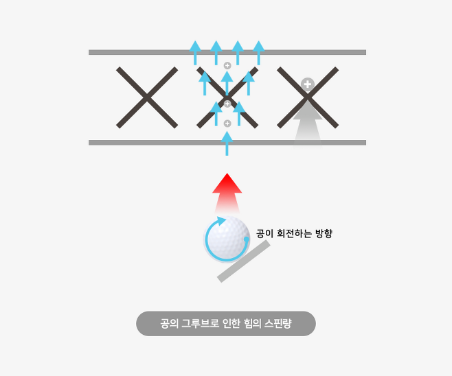 일반적 그루브는 페이스 표면의 라인 홈에 볼이 통과하면서 스핀이 발생합니다.