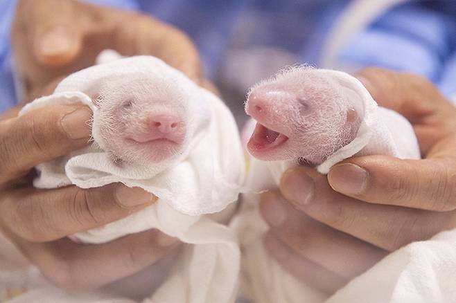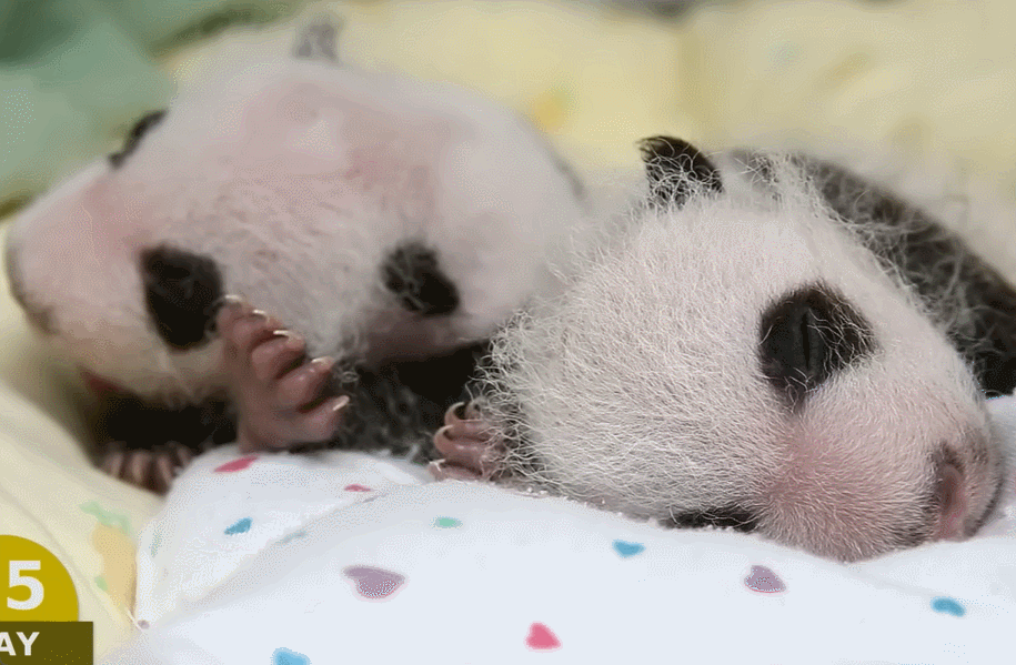 태어난 지 얼마 안 된 쌍둥이 판다! 3일 차, 4일 차, 5일 차…