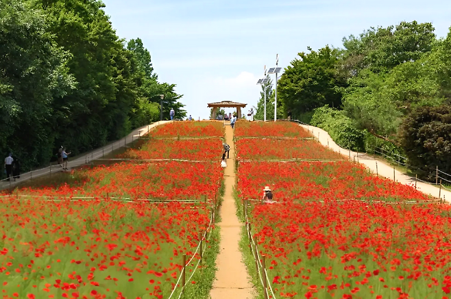 단풍이 들기 전, 가을을 가장 먼저 느낄 수 있는 곳은 올림픽공원 들꽃마루입니다. 황화 코스모스가 활짝 피는 길을 따라 걷다 보면 자연스레 미소가 지어질 만큼 평화로운 분위기가 흐르죠. 들꽃마루는 위쪽에서 아래로 내려다보는 경사형 꽃밭이라, 사진 찍을 때 인파를 자연스럽게 가릴 수 있어 인생샷 명소로도 유명합니다.
