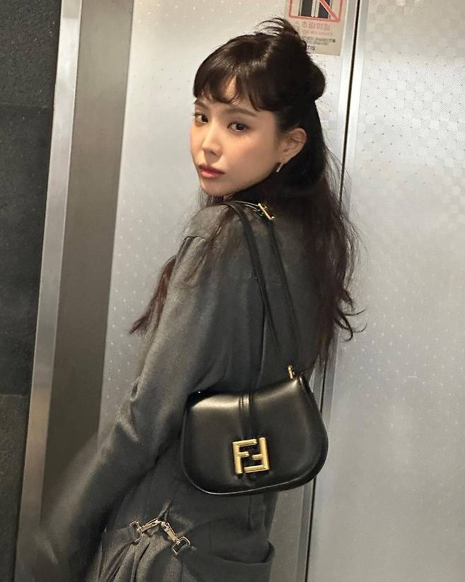 앞머리를 내린 반묶음 스타일링을 연출한것!