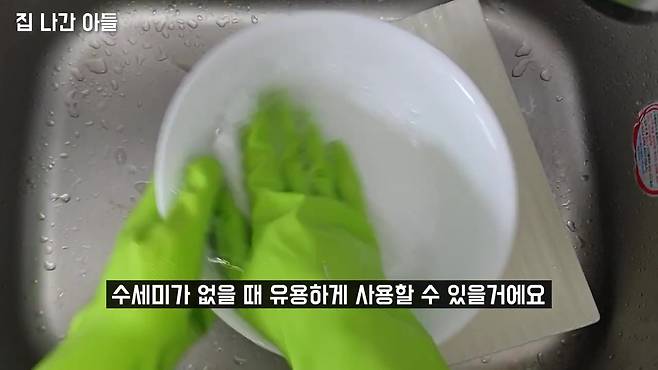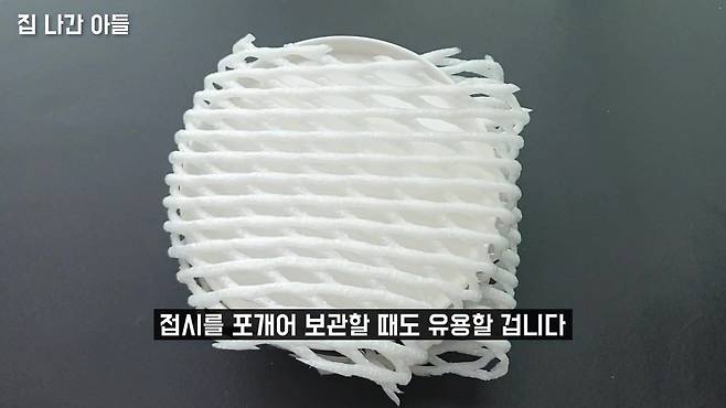 여행이나 캠핑 중 수세미가 없을 때, 과일 포장지가 임시 수세미로 딱!