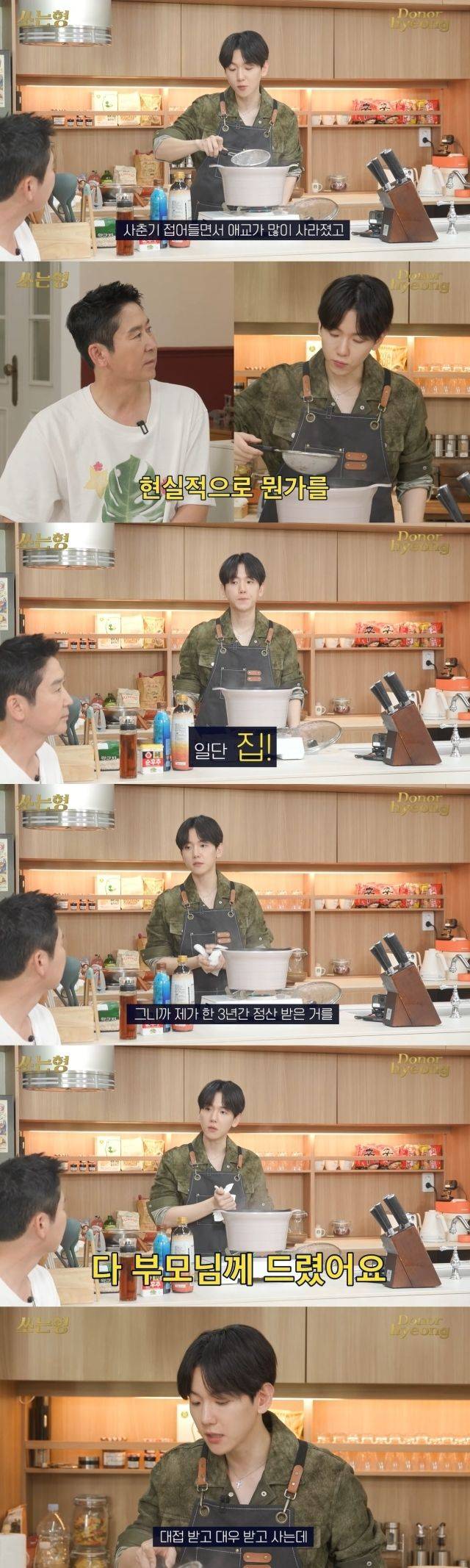 그러면서 백현은 "일단 집을 선물했다. 차도 주기적으로 바꿔드리고 있다. 3년 간 정산 받은 걸 부모님께 다 드렸다"고 했다.