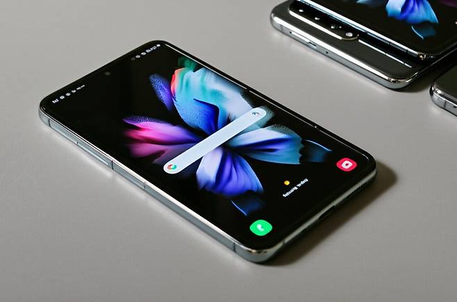 • 플렉스 모드: 폴드를 특정 각도로 펼쳐서 세워두고 사용할 수 있습니다. 별도의 거치대 없이 영상 시청이나 화상 통화를 편리하게 즐길 수 있습니다.