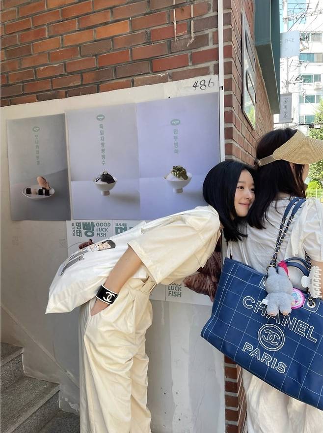 특히 눈길을 끈 것은 블랙 컬러의 샤넬 로고 뱅글과 손목시계로, 모던함을 더한 액세서리 매치가 ‘꾸안꾸’의 정석을 보여주었습니다.