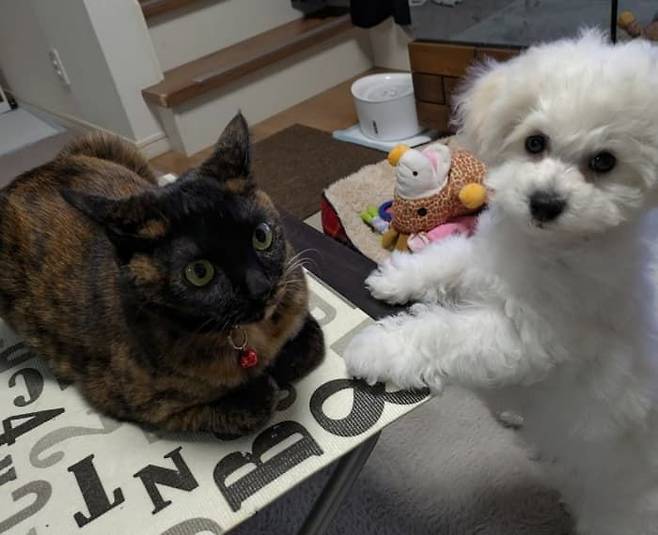 그만큼 평소 환경이 얼마나 중요한지 강아지와 고양이 통해 알 수 있었습니다. 사진을 접한 누리꾼들은 "진짜 대박", "강아지 정체성 잃어 버린 건 아니겠지", "너무 신기해요" 등의 다양한 반응을 보였습니다.
