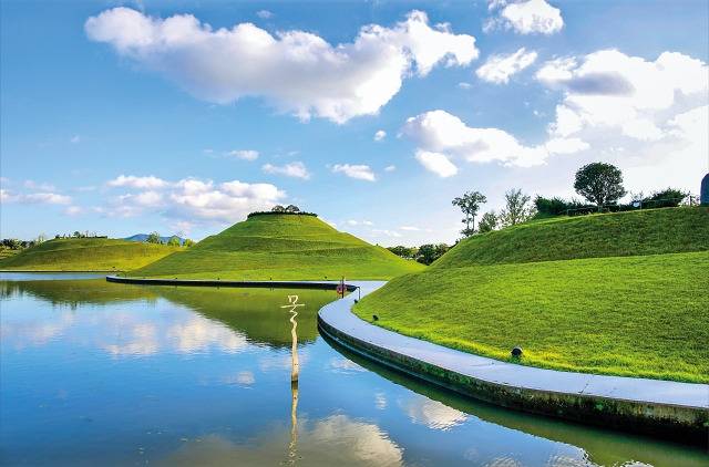 스페이스브릿지를 통해 동천을 건너면 동원 여행의 시작입니다. 오른쪽으로는 중국정원과 프랑스정원이 차례로 이어지고 메인 길을 따라 걷다보면 2013 순천만국제정원박람회 당시 세계적인 지형디자이너이자 조경가 찰스 쟁스가 설계한 순천호수정원이 눈에 들어옵니다. 동천의 물길을 끌어와 조성한 호수에 봉화언덕, 난봉언덕, 인제언덕, 해룡언덕, 앵무언덕, 순천만언덕 등 여섯 개의 크고 작은 언덕과 산책로로 꾸민 순천호수공원은 순천의 지형을 축소해 표현한 것입니다. 순천만국가정원을 대표하는 상징 조형물이기도 합니다. 그중 규모가 가장 크고 중심이 되는 봉화언덕은 얼핏 보면 거대한 달팽이집이 연상되기도 하는데 순천 시내 봉화산을 형상화했습니다. 높지 않은 데다 경사가 완만해 일대 전경을 감상할 겸 산책 삼아 올라볼 만합니다. 언덕에 서면 가까이 바위정원과 독일정원 등이 내려다보입니다.