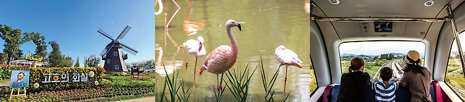 서문을 통할 경우 입장 후 가장 먼저 눈에 띄는 건 ‘순천만WWT 습지’입니다. 연꽃이 더해질 땐 ‘지베르니 모네의 정원’이 부럽지 않다는 곳입니다. 늦여름을 향해 달음질하는 지금은 왕성한 호흡을 내뿜는 생태습지를 관찰할 수 있습니다. 이따금 거위와 백조, 홍학 무리가 이국적인 풍경을 연출합니다.