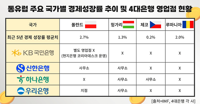 폴란드·헝가리 힘 싣는 우리·신한銀, 국내 유일 체코 진출 하나銀, 동유럽 확장 저울질 국민銀