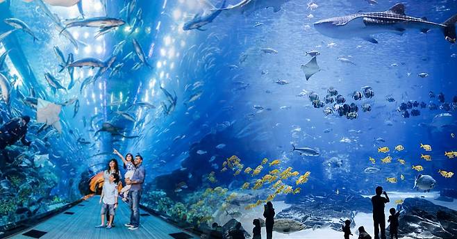 이곳에서는 큰 크기의 고래상어, 열대 지방의 돌고래, 백돌고래 등 희귀 생물까지 감상할 수 있어 입장료 약 7만 6천원의 비싼 가격임에도 연간 1000만 명 이상이 방문하고 있다고 합니다.