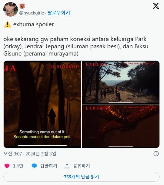 2024년 첫 천만 영화에 등극한 영화 <파묘>가 한국을 넘어 해외 극장가를 장악하고 있어 화제를 모으고 있다.
