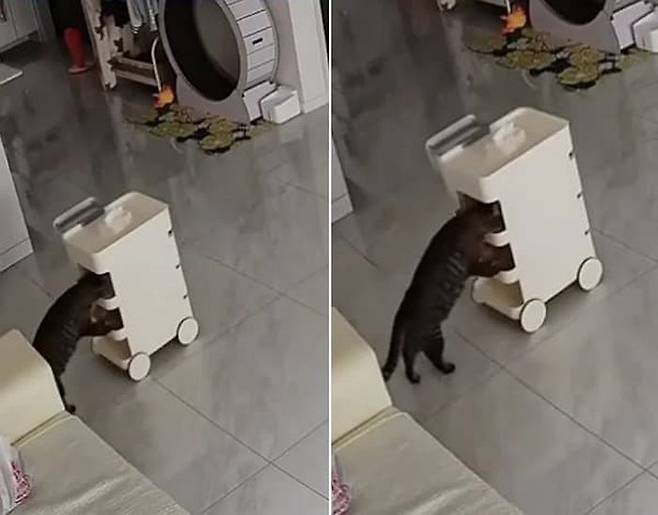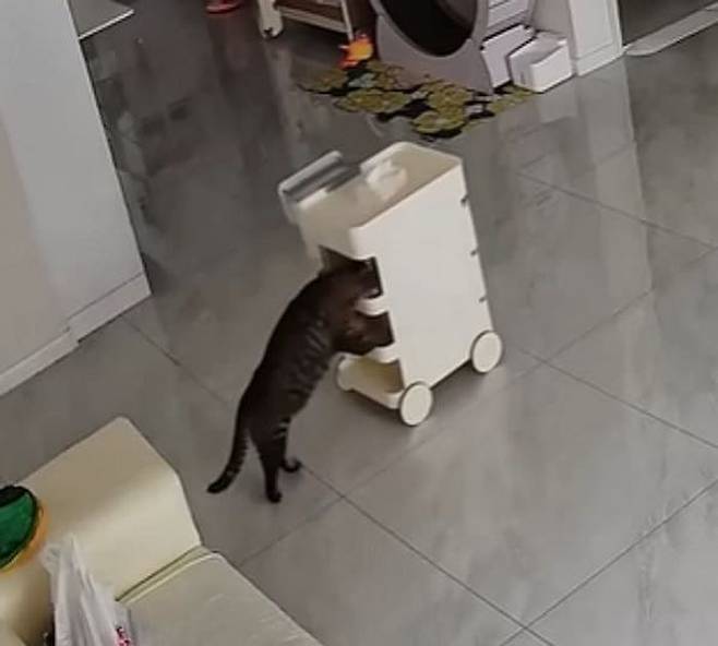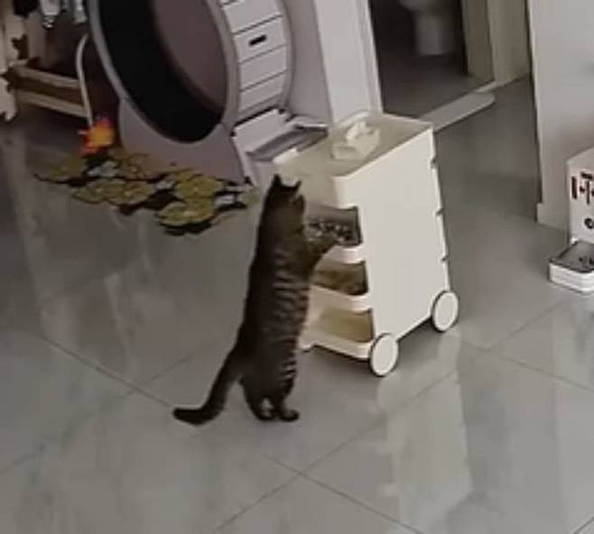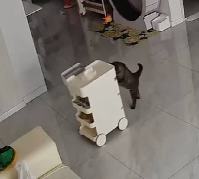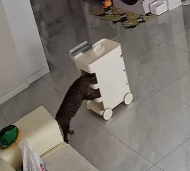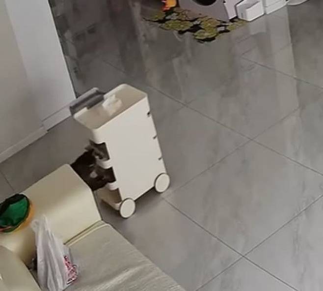 그런데 여기 주인이 출근한 사이 집에서 바퀴 달린 작은 카트를 이용해 아주 특별한 놀이(?)를 즐긴 영리한 고양이가 있다고 하는데요.