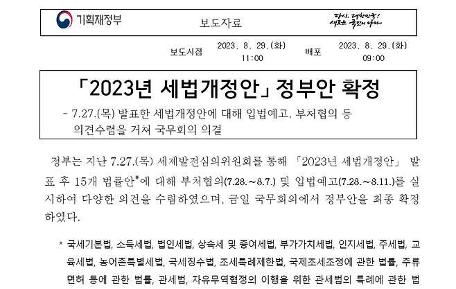 8월 29일 국무회의를 통과한 증여재산 변경 내용이 있습니다. 9월에 국회에서 통과되면 2024년 1월 1일부터 적용됩니다. 결혼자금으로 주는 돈에 대해서 직계존속으로부터 1억원을 추가 공제한다는 내용입니다. 혼인신고일 앞뒤로 2년씩, 총 4년간 자녀에게 1억원을 증여해도 증여세를 내지 않게 됩니다.