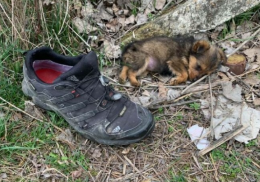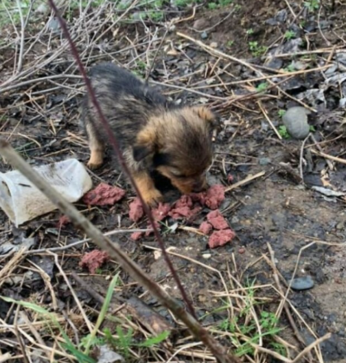 들판에는 쓰레기가 여기저기 널려있었는데, 낡은 신발 옆에 작은 강아지 한 마리가 쓰러져 있던 것이죠.