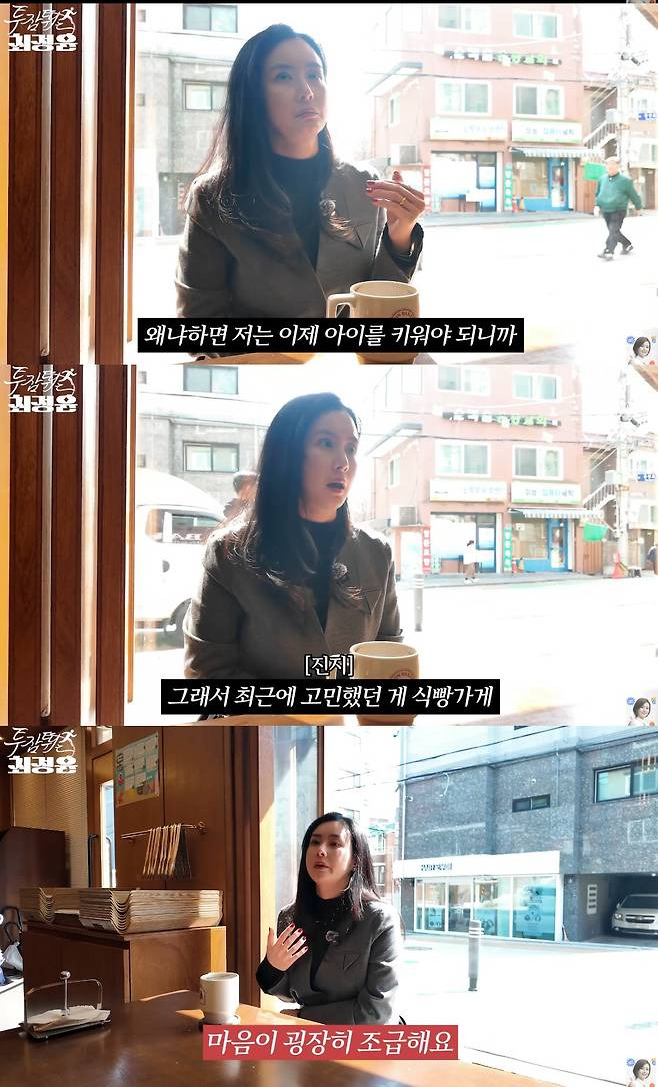 최정윤은 "나이 있는 역할들이 많지 않기 때문에 언제 일을 다시 할 수 있을지 모르겠더라. 저는 지우를 케어해야 하니까 '알바를 해보자' 해서 구인 사이트에 이력서도 올리고 했는데 나이 제한에 많이 걸렸다"며 "서빙 일은 시간이 안 맞더라. 지우를 보내자마자 지우에 맞춰 끝나는 일이 없더라. 찾다 찾다 무너졌다"고 고백했습니다.