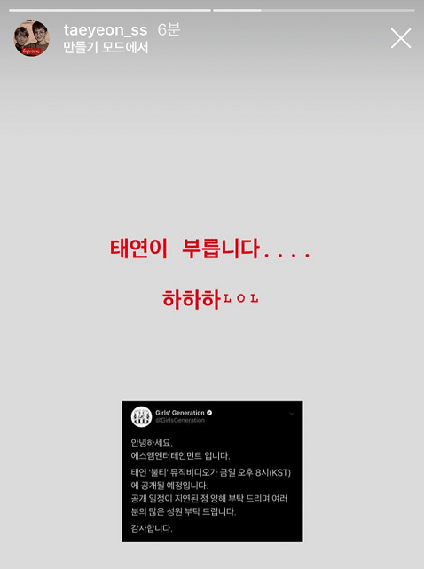 뮤직비디오 제작에 힘써준 모든 분들, 소녀시대 그리고 소원(소녀시대 팬덤명)에게 감사하고 축하한다는 인사를 남긴 태연은 "근데 슴은 안 기뻐? 슴 뭐 해?”라는 뼈 있는 멘트를 남긴다.