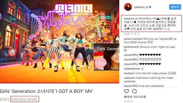 걸그룹 '소녀시대'의 리더이자 메인보컬인 태연은 2013년 정규 4집 타이틀곡인 'I GOT A BOY'의 뮤직비디오가 4년여 만인 2017년 2억 뷰를 돌파하자 기쁜 마음과 함께 소속사인 SM엔터테인먼트에 대한 서운함을 토로한다.
