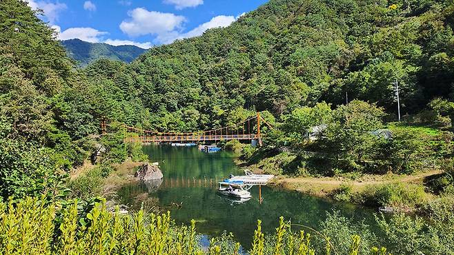 비수구미로 들어서는 방법은 단 두 가지뿐입니다. 하나는 선착장에서 보트를 타고 5~10분 만에 마을에 닿는 길.